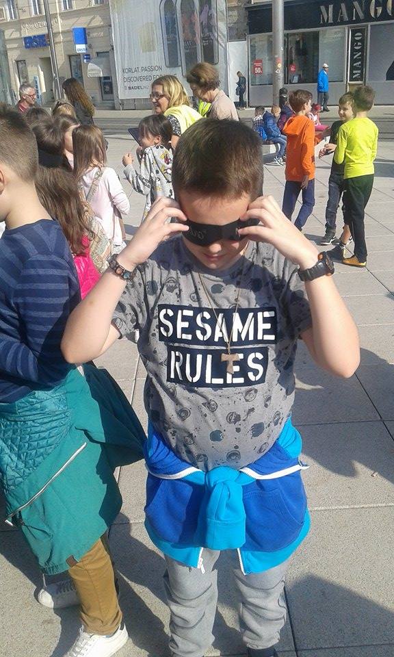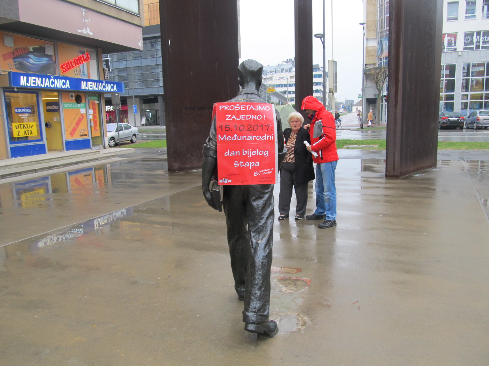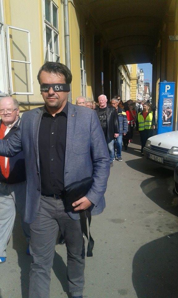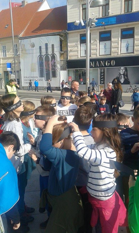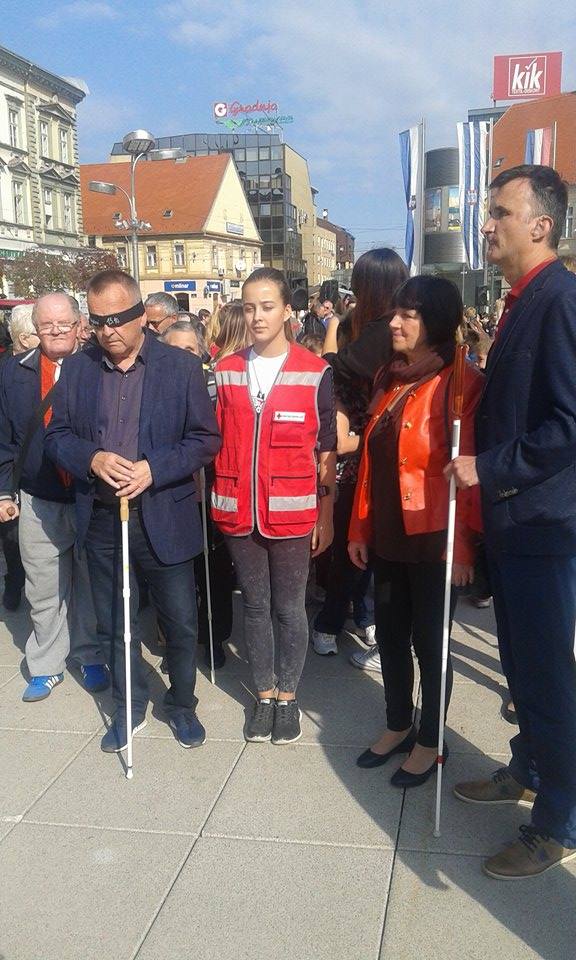 Akciju su podržali volonteri Crvenog križa Osijek i instruktori za kretanje pomoću bijelog štapa Centra “Silver” iz Zagreba, učenici osječkih osnovnih škola i predstavnici raznih udruga osoba s invaliditetom.Sudionici su se okupili na Trgu Ante Starčevića gdje su u koloni i s povezima na očima krenuli u šetnju Županijskom ulicom, Ulicom Hrvatske Republike, Ulicom Lorenza Jegera, Kapucinskom ulicom nazad do Trga. Nakon šetnje svi okupljeni pozvani su na zajedničko druženje i osvježenje koje su za najmlađe pripremili sponzori akcije.