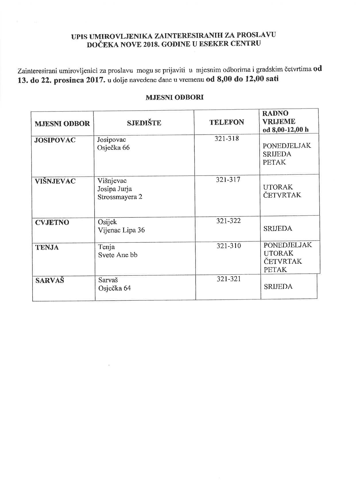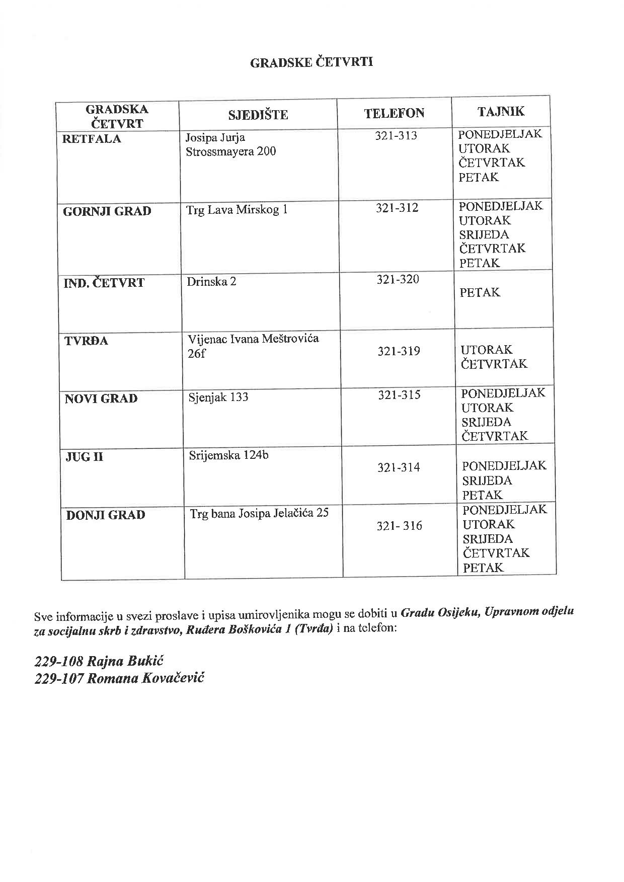 Nakon toga, prijave se zaprimaju i od umirovljenika čija mirovina ne prelazi 2.000 kuna, a moguće je prijaviti se i u gradskim četvrtima i mjesnim odborima čiji popis i radno vrijeme objavljujemo u nastavku teksta.