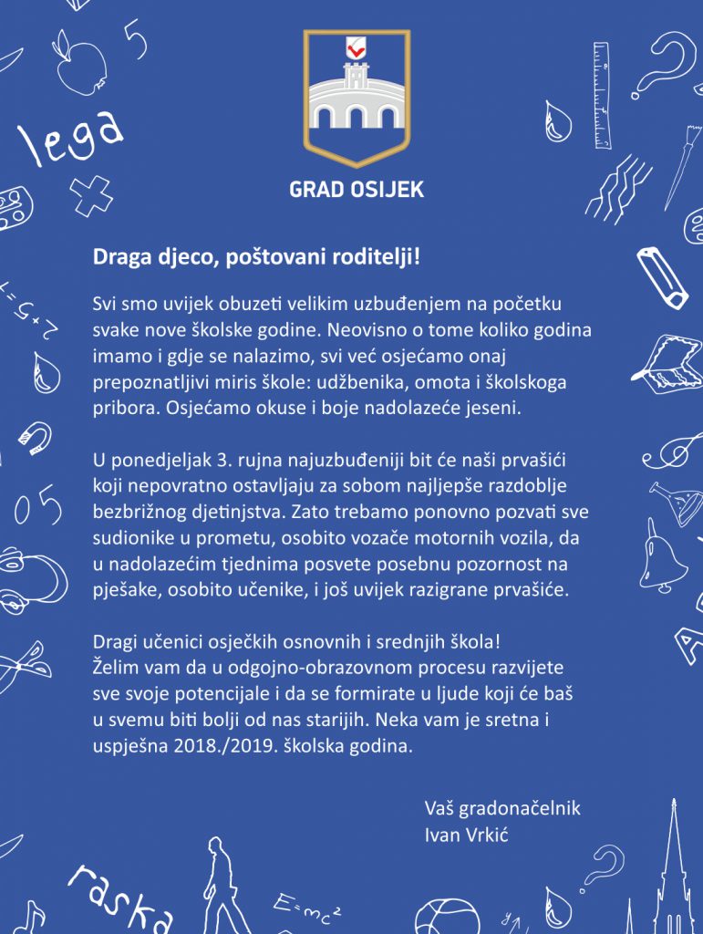 Grad Osijek » GRADONAČELNIKOVA ČESTITKA PRIGODOM POČETKA NOVE ŠKOLSKE GODINE