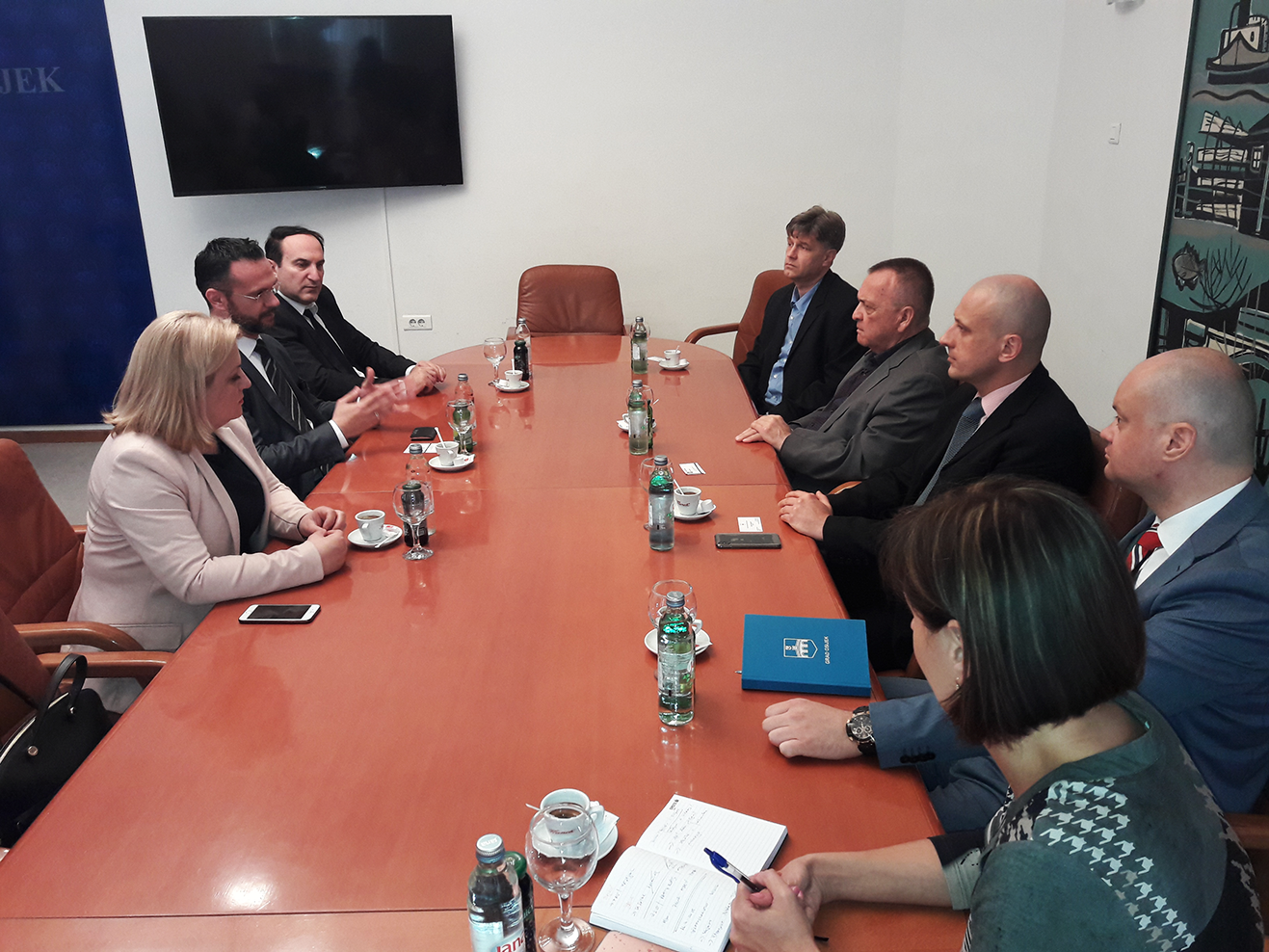 U Gradskoj upravi primio ih je gradonačelnik Ivan Vrkić zajedno sa zamjenikom Borisom Piližotom i suradnicima. Jačanje gospodarske suradnje bila je tema-okosnica cijelog susreta, čemu će se obje strane aktivno posvetiti u narednom razdoblju. Prije svega treba utvrditi koji od naših osječkih proizvođača i tvrtki (uz primjerice Saponiju koja već godinama dobro posluje s Kosovom) imaju interes prema tom tržištu. Izvrsni odnosi s Albancima koji žive i rade u Osijeku vezivno su tkivo i mostovi suradnje između dviju država, koji će pripomoći ostvarivanje svih postavljenih ciljeva – poručio je gradonačelnik
