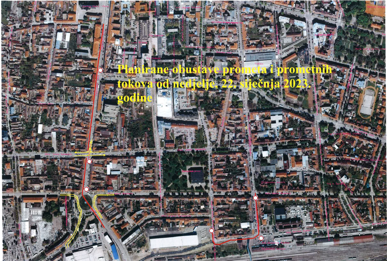 -obustavlja se promet na dijelu Županijske ulice od Ulice Hrvatske Republike do Trga pape Ivana Pavla II;