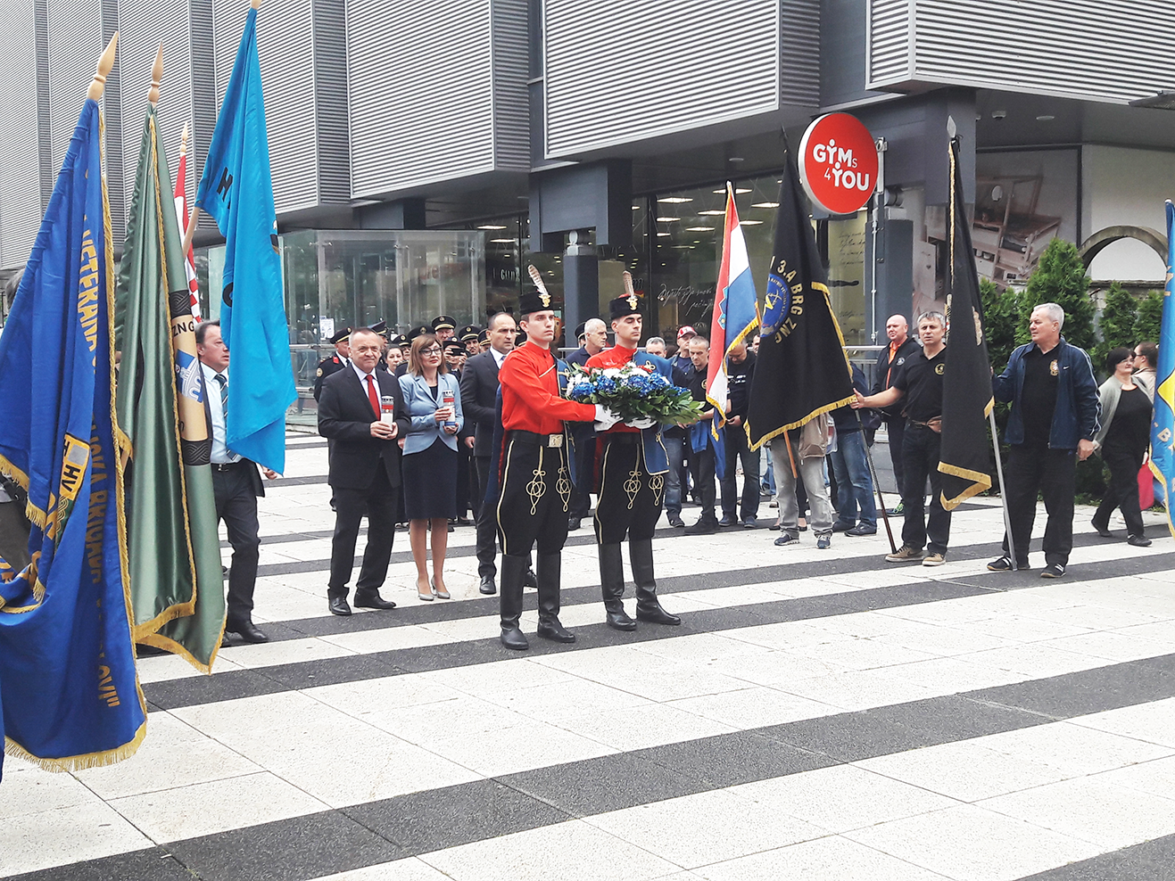Središnji dio programa započeo je mimohodom od Doma HV do Trga slobode, gdje je položeno cvijeće na spomenik prvom predsjedniku dr. Franji Tuđmanu, a potom i vijenci kod Spomen obilježja stradalnicima Domovinskog rata na Trgu slobode.