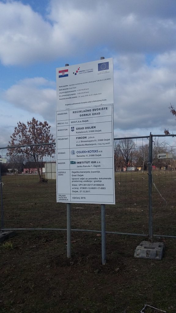 Još prigodom potpisivanja Ugovora o izgradnji dva nova reciklažna dvorišta na području Osijeka, Gradska je uprava podsjetila javnost kako jedinice lokalne samouprave s više od 100 tisuća stanovnika, imaju zakonsku obvezu izgraditi četiri reciklažna dvorišta. Osječani na već postojećem reciklažnom dvorištu Zeleni otok Jug II mogu odložiti sve vrste otpada (38 vrsta): problematični otpad, papir, metal, staklo, plastiku, tekstil, glomazni otpad, jestiva ulja i masti, boje, deterdžente, lijekove, baterije i akumulatore, električnu i elektroničku opremu i drugi, a preuzimanje građevnog otpada iz kućanstva (10 vrsta otpada) omogućeno je na odlagalištu Lončarica Velika.