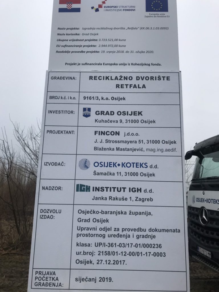 Gotovo mjesec dana nakon potpisivanja Ugovora s tvrtkom Osijek-Koteks, započeli su radovi na izgradnji dva nova reciklažna dvorišta: RD Gornji grad i RD Retfala. Svečanom započinjanju radova nazočili su ministar zaštite okoliša i energetike Tomislav Ćorić, direktor Fonda za zaštitu okoliša i energetsku učinkovitost Dubravko Ponoš i gradonačelnik Ivan Vrkić. Župan osječko-baranjski Ivan Anušić svojom nazočnošću dao je potporu ovom projektu kao i nizu drugih projekata gradonačelnika Ivana Vrkića, kao što je primjerice uspostava izravne željezničke veze Osijek-Pečuh ili nabavka novih niskopodnih autobusa za Gradski prijevoz putnika.