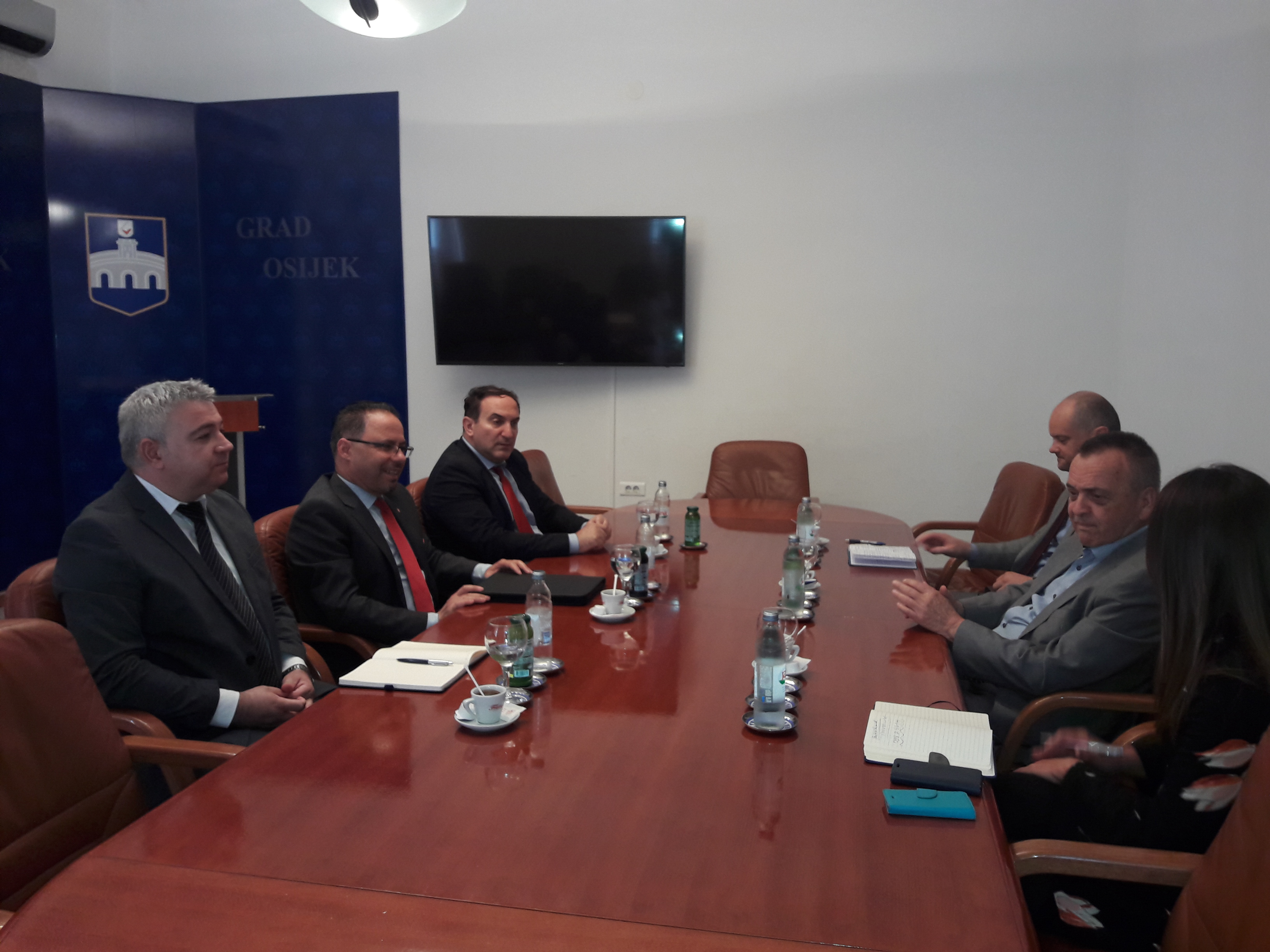 Razgovaralo o mogućnostima produbljivanja suradnje gradova Elbasana i Osijeka, koji su Sporazum o prijateljstvu i suradnji potpisali tijekom 2015. godine. Naglašena je važnost suradnje posebice u okviru EU projekata, kao i o mogućnostima uspostave gospodarske suradnje, u području turizma, gastronomiji i proizvodnji vina, a za što su Albanci izrazito zainteresirani. Veleposlanik Mela naglasio je kako mu ovo nije prvi put da posjećuje Osijek i kako tijekom svakog svoga posjeta uoči mnoge prilike za suradnju dvaju zemalja.