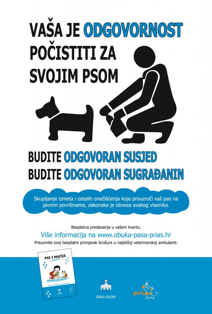 S obzirom na sve veću brojnost pasa i mačaka u našoj okolini – Grad Osijek, surađujući s udrugama za zaštitu životinja, prepoznao je važnost izobrazbe vlasnika pasa i mačaka s ciljem stvaranja zdravoga okružja za kućne ljubimce i njihove vlasnike te općenito građane Osijeka. U svrhu podizanja svijesti o primjerenoj skrbi za životinje, novo upisanim vlasnicima pasa i mačaka s područja Grada Osijeka omogućena je besplatna izobrazba u okviru radionica te informativno-stručnog vodiča.