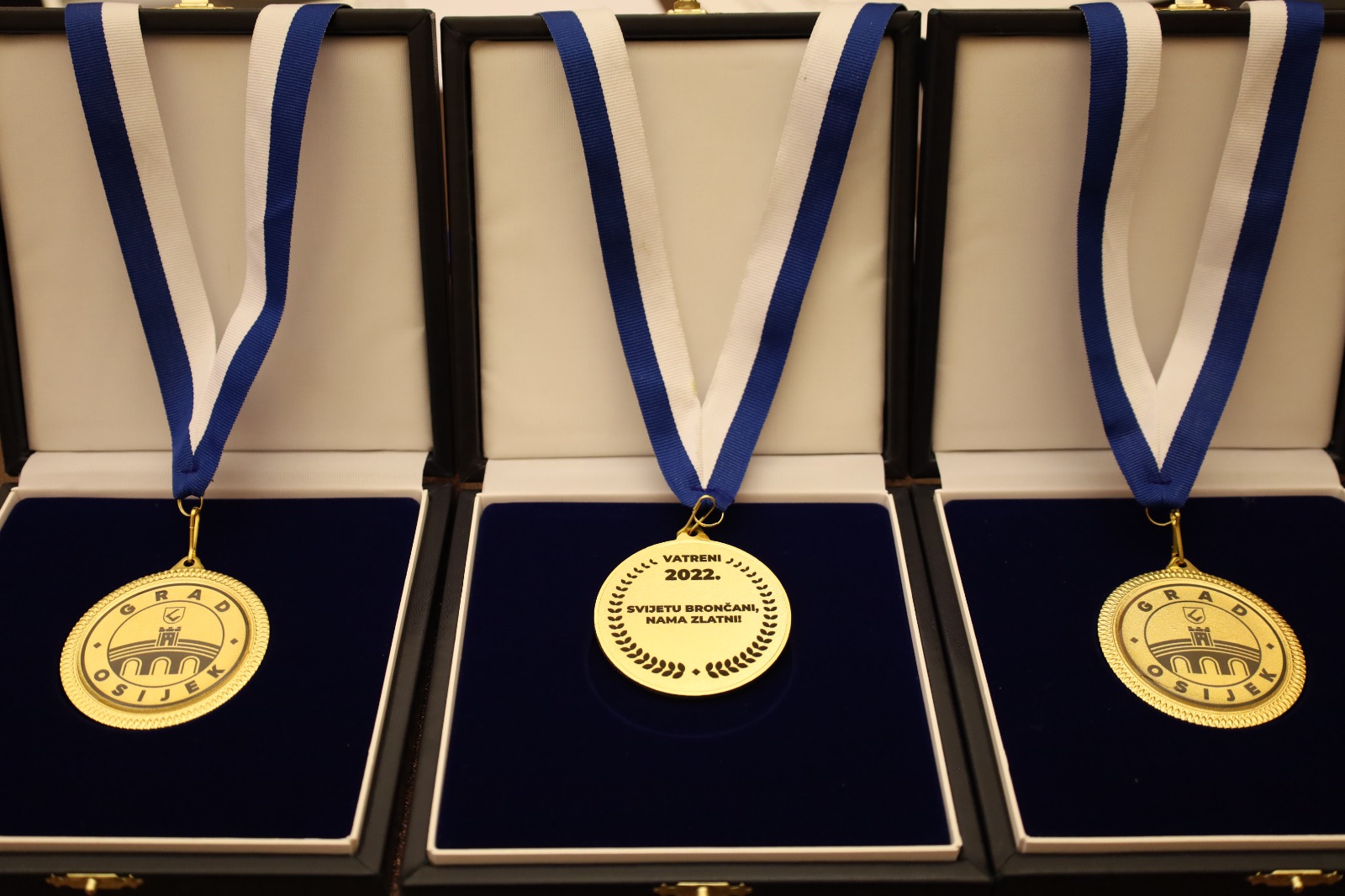 Osječki program dočeka počeo je u 17 sati kada su gradonačelnik Radić i župan Anušić u prostorijama Grada Osijeka primili Vatrene i uručili im medalje s natpisom ,,Svijetu brončani, nama zlatni!